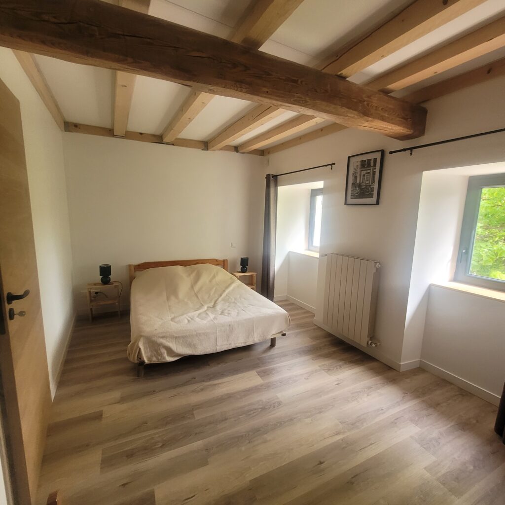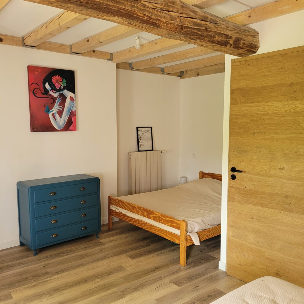 🛏️ Au premier étage, une chambre avec 2 lits doubles et une salle de bain avec WC.