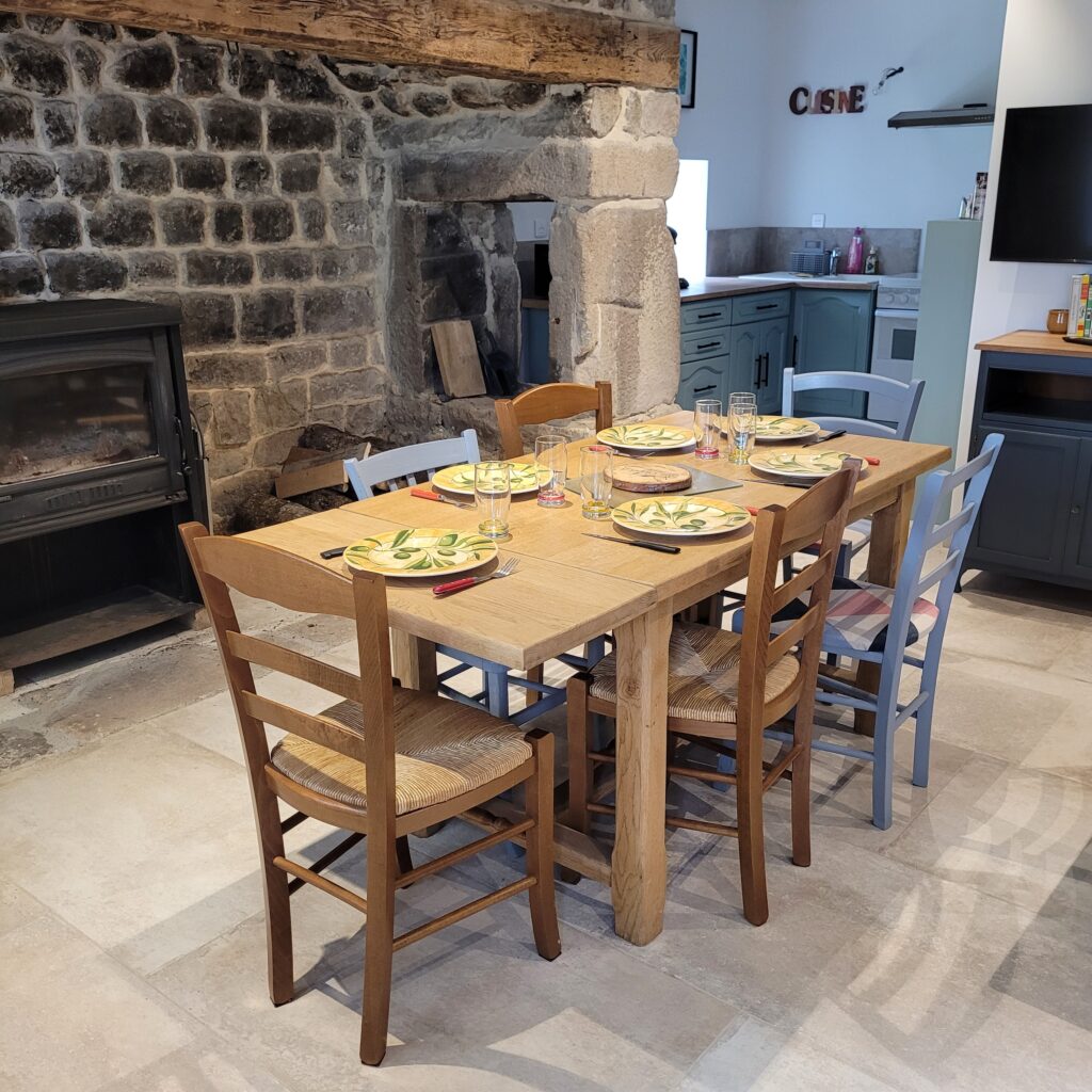 Vous retrouverez une cheminée en pierre datant de l’origine de la demeure (1784) au niveau du Rez-de-chaussée ainsi qu’une pièce à vivre de 30 m², un coin cuisine équipé et un WC.